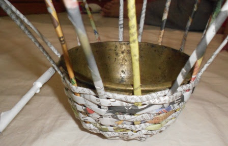 Potong lembar kertas koran menjadi delapan, kemudian buat lintingan dengan bantuan lidi. Buat lintingan sebanyak 120 lintingan. pembuatan lintingan telah dipelajari sebelumnya.